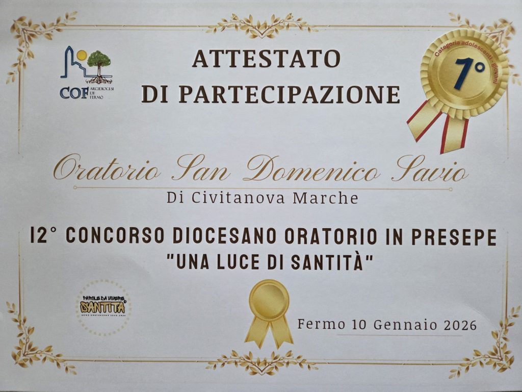Incredibile e meritatissimo risultato per gli Animatori e le Animatrici dell’Oratorio San Domenico Savio della nostra parrocchia: hanno vinto il primo premio nella fascia di età Adolescenti e Giovani del dodicesimo Concorso Diocesano Presepi “UNA LUCE DI SANTITÀ” organizzato dal Coordinamento Oratori Fermani!