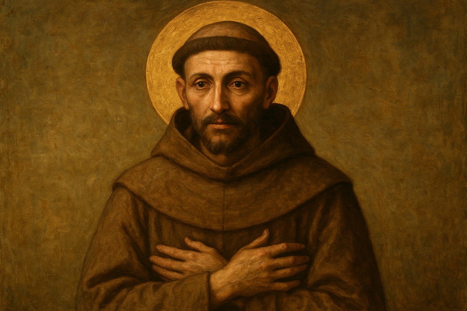 In questo tempo in cui si invoca da più parti la pace, Francesco ci aiuta a ritrovare nel nostro cuore, abitato da Dio, la vera pace. Identificandosi in tutto con Cristo povero e crocifisso, “si liberò da ogni desiderio di dominio sugli altri, si fece uno degli ultimi e cercò di vivere in armonia con tutti” (Fratelli tutti 4).